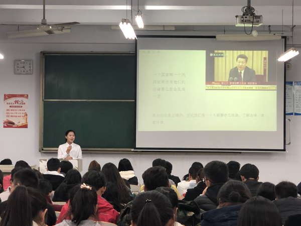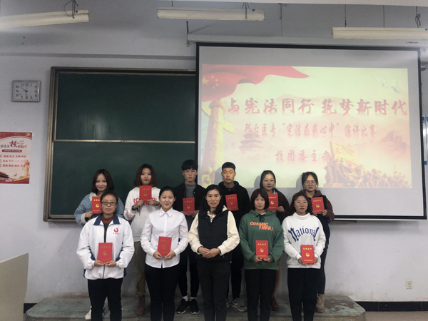 为引导和促进广大青年学生学习宪法知识、增强宪法意识、弘扬宪法精神,11月5日下午,校团委在2017级普临1班阶梯教室举办了“宪法在我心中”演讲比赛。校团委副书记卢青和团委各部门学生负责人担任评委。