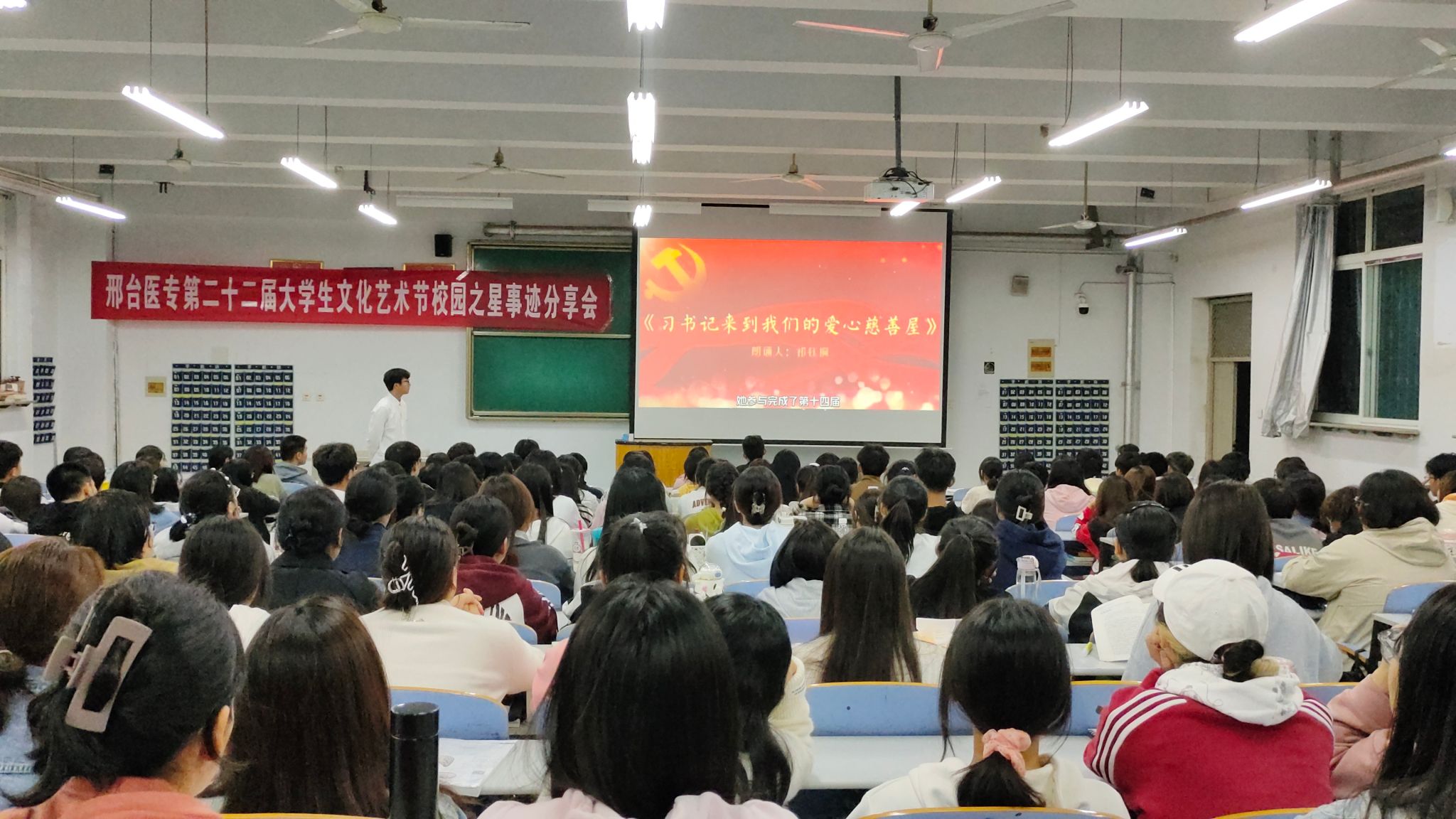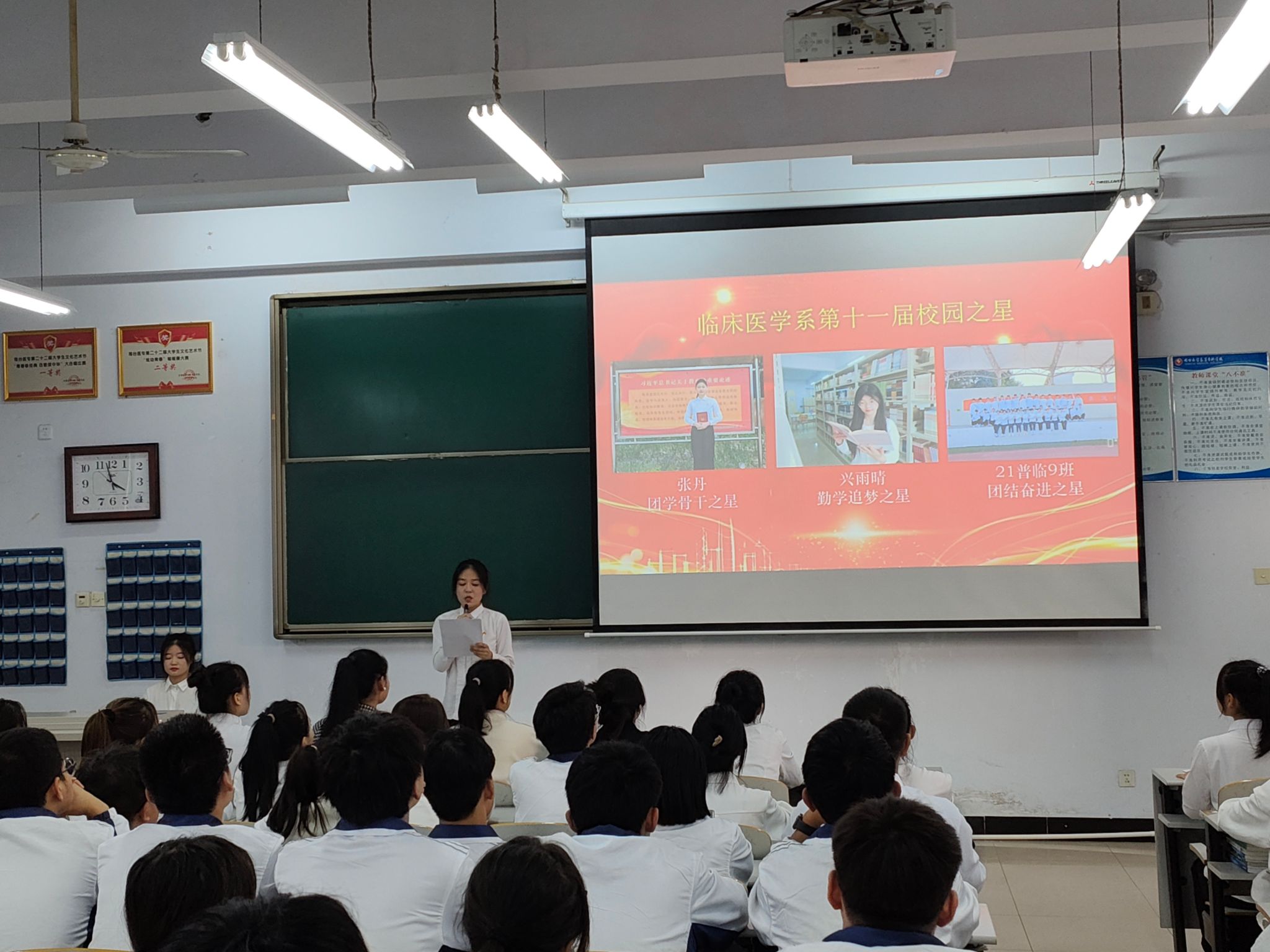 分享会上,大家共同学习了校园之星的先进事迹。积极参加活动、各项成绩优异的“品学兼优之星”——口腔医学系员桥同学;传递温暖、奉献爱心的“志愿服务之星”——护理系季冉同学;将责任担当铭记于心、付诸于行的“团学骨干之星”——临床医学系张丹同学;笃行好学、刻苦钻研的“勤学追梦之星”——临床医学系兴雨晴同学;精益求精、用专业技能书写青春新篇章的“技能之星”——药学系杨松同学;意志坚强、乐观面对挑战的“自强励志之星”—— 药学系张璐瑶同学,还有荣获2022年“挑战杯”河北省大学生创业计划竞赛一等奖的创新创业之星——2021级护理9班青春无畏团队……一个个先进的事迹让在场的同学们都备受鼓舞。同学们也纷纷表示要从榜样身上汲取力量,争做奋发有为、创先争优、立志成才的新时代好青年。