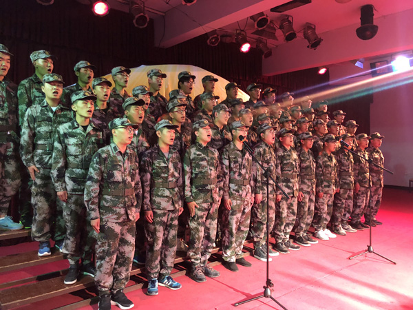比赛中,2018级普中医班代表队演唱的《一二三四歌》,在迷彩的映衬下,每位同学都显得神采飞扬,气宇轩昂。2018级普临3班代表队在合唱《严守纪律歌》的同时,班里的几名退伍军人大学生为大家表演了军体拳,每一招、每一式都刚劲有力,赢得了阵阵喝彩。《打靶归来》《中国人民解放军军歌》《绒花》《强军战歌》《喀秋莎》《假如今天战争爆发》……报告厅激情澎湃、余音绕梁,同学们用一首首经典歌曲表达着对祖国母亲的热爱与崇敬之情、对党和共青团的无限忠诚。经过激烈的角逐,2018级普临2班代表队的《光荣啊中国共青团》《中国人民解放军歌》夺得冠军。最后,第十六届艺术节获奖选手2017级普临1班邵雨薇同学的独唱《共和国之恋》,为此次合唱活动画上圆满句号。