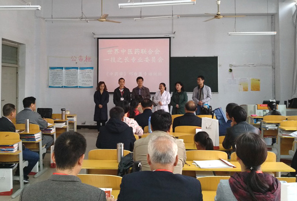 世界中医药学会联合会是国际性中医药学术组织,国家中医药管理局副局长担任主席,本次培训班是应一技之长专委会会长曹东义教授商请,学校领导批准后开办的。曹东义会长是河北中医药科学院副院长,河北中医学院硕士生导师,也是开元中医专业客座教授。在学术交流及考察活动中,曹教授对开元中医药教学资源及师资力量给予了很高评价。因此,选定开元承担本次一技之长专委会对会员进行执业资格考核公益性系列培训中的《中药学》课程。