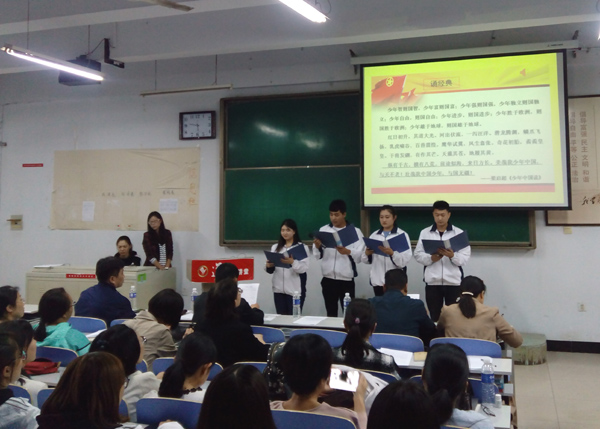 先进是一面旗帜,榜样是一种力量。在学新知、看视频环节,宣讲员带领大家学习了习近平总书记讲话精神,观看了《公仆之路》《青年榜样习近平》等视频。在讲故事环节,大家学习了中国工程院院士林俊德、全国道德模范农加贵、中国肝脏外科之父吴孟超、塞罕坝林场建设者等先进事迹,广大师生表示要向总书记看齐,向时代楷模学习,始终坚守初心、坚定理想,始终与人民相结合、和群众在一起,多一些摔打磨练、多几分淡定从容,不在坐享其成中虚度青春,要在不懈奋斗中创造未来,勇做走在时代前列的奋进者、开拓者、奉献者,努力在实现中国梦的生动实践中放飞青春梦想。
