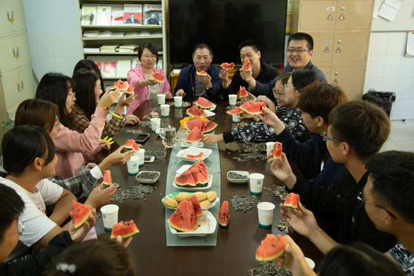 茶话会上,师生们欢聚一堂,系领导为同学们送上了中秋祝福,并叮嘱大家做好角色转变,尽快适应大学生活,珍惜大学时光,努力学习专业知识,做一名品学兼优的大学生。同学们也对学校领导和辅导员在学习、生活上的关心表示感谢,大家一起吃西瓜、品月饼、话乡情,互诉师生情谊。