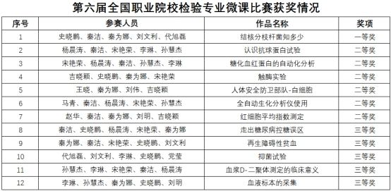 第六届全国职业院校检验微课大赛和第三届全国职业院校检验专业课程思政大赛采取线上提交作品、组委会初审、评委现场打分的形式进行,开元教师加班加点,从作品选题、课程设计等方面反复打磨参赛作品,不断提高授课质量,参赛作品共获一等奖3项、二等奖9项、三等奖5项,获奖数量在全省位居第一。