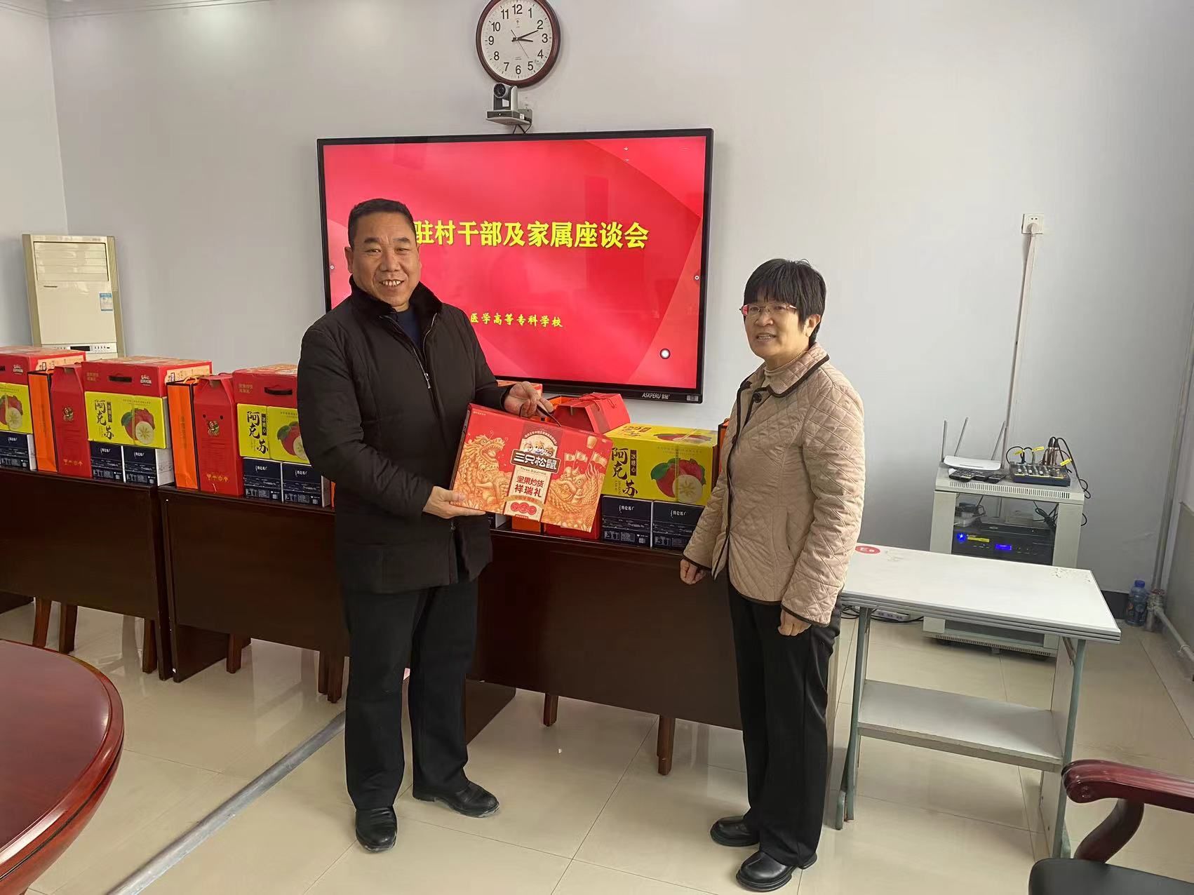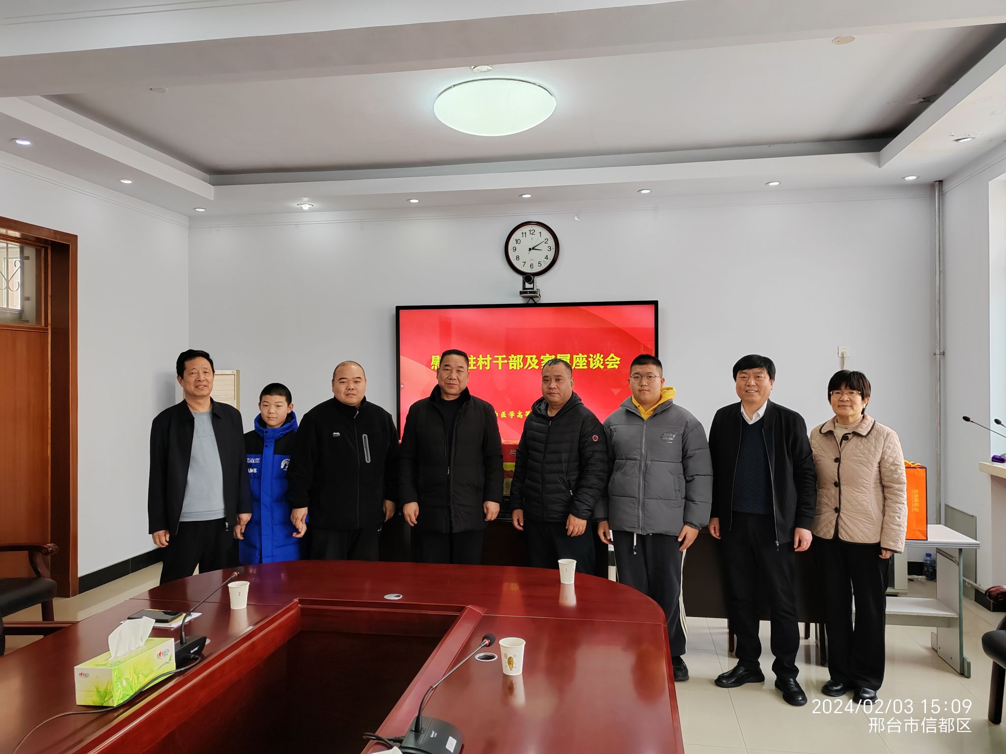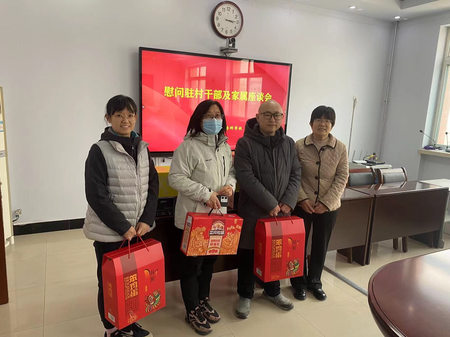 2月3日,在2024年新春佳节即将到来之际,学校召开慰问驻村干部及家属座谈会,校长李建广、党委副书记杜成旭及党委委员、组织宣传统战部部长张永格参加,驻新河县南王家庄村和驻南宫市东唐苏村驻村干部及家属参加座谈。座谈会由杜成旭副书记主持。