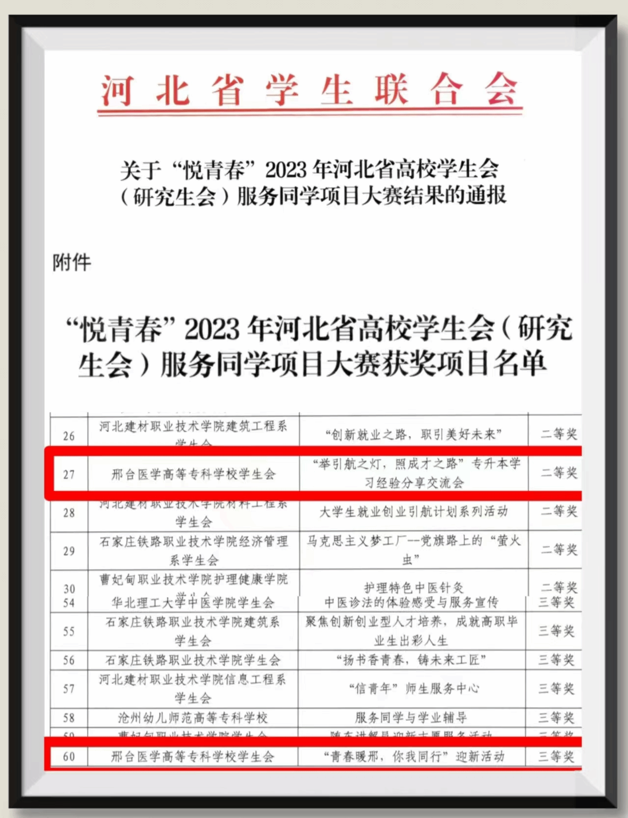 近日,河北省学生联合会“悦青春”2023年河北省高校学生会(研究生会)服务同学项目大赛结果公布,开元推报的2个项目全部获奖:《举引航之灯,照成才之路”专升本学习经验活动》项目荣获二等奖,《“青春暖邢,你我同行”迎新活动》项目荣获三等奖。开元为邢台地区唯一获奖高校。