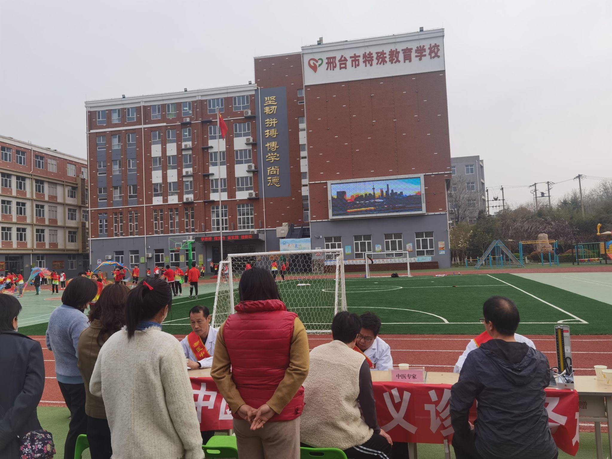4月1日,中医系党总支组织师生走进邢台市特殊教育学校开展义诊服务。
