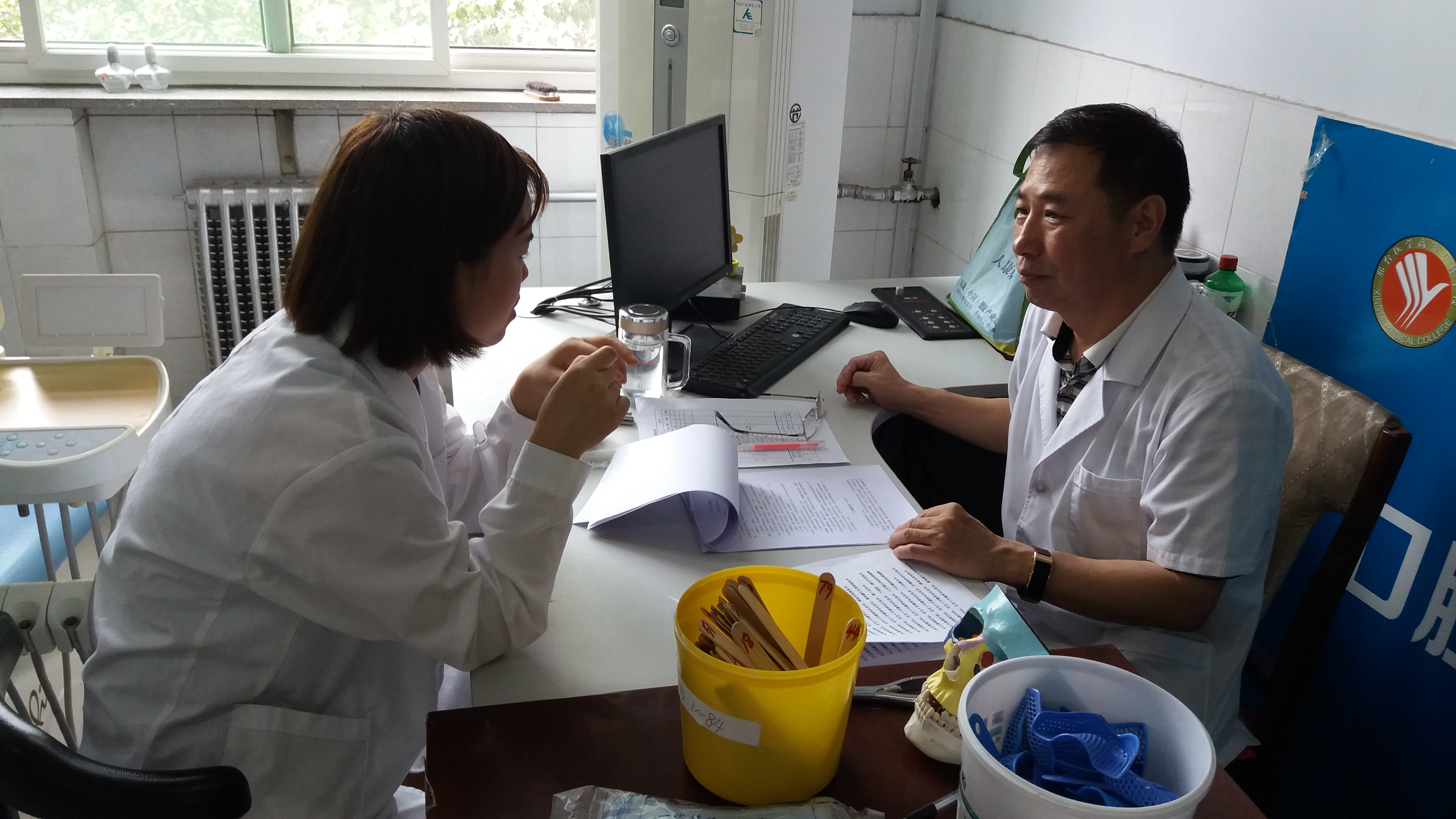 6月21日-22日,口腔医学系在口腔实训中心开展了模拟助理医师三站式考核,2016级普专口腔医学专业的544名学生参加考试,口腔医学系马涛等21名教师担任考官。