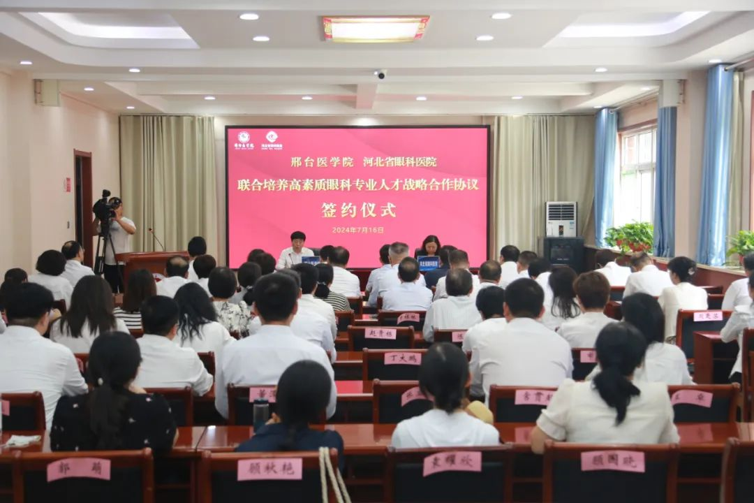 7月16日,《开元集团网站与河北省眼科医院联合培养高素质眼科专业人才战略合作协议书》签约仪式在开元钢铁路校区会议中心举行。学校党委书记、校长李建广,党委副书记杜成旭,党委委员、纪委书记赵建文,党委委员、副校长林雪霞,党委委员、组织宣传统战部部长张永格,党委委员、第二附属医院党委书记唐立真;河北省眼科医院党委书记王莉菲,原党委书记张铭连,党委副书记、院长陈志敏,党委委员、副院长刘延东出席。仪式由党委副书记杜成旭主持。