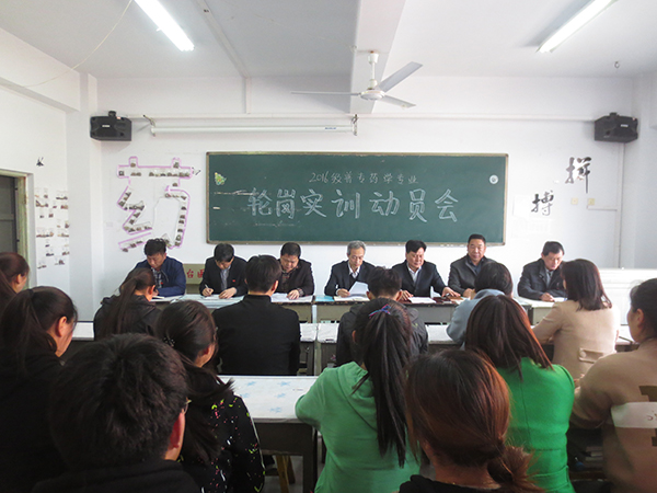 4月8日下午,药学系在2016级药学专业现代学徒制班教室召开了轮岗实训动员会。学校党委委员、副校长李朝鹏,河北国金药业有限责任公司工会主席、人力资源部部长李炳佑,药学系领导、药学教研室教师、辅导员、2016级药学专业现代学徒制班学生参加会议。