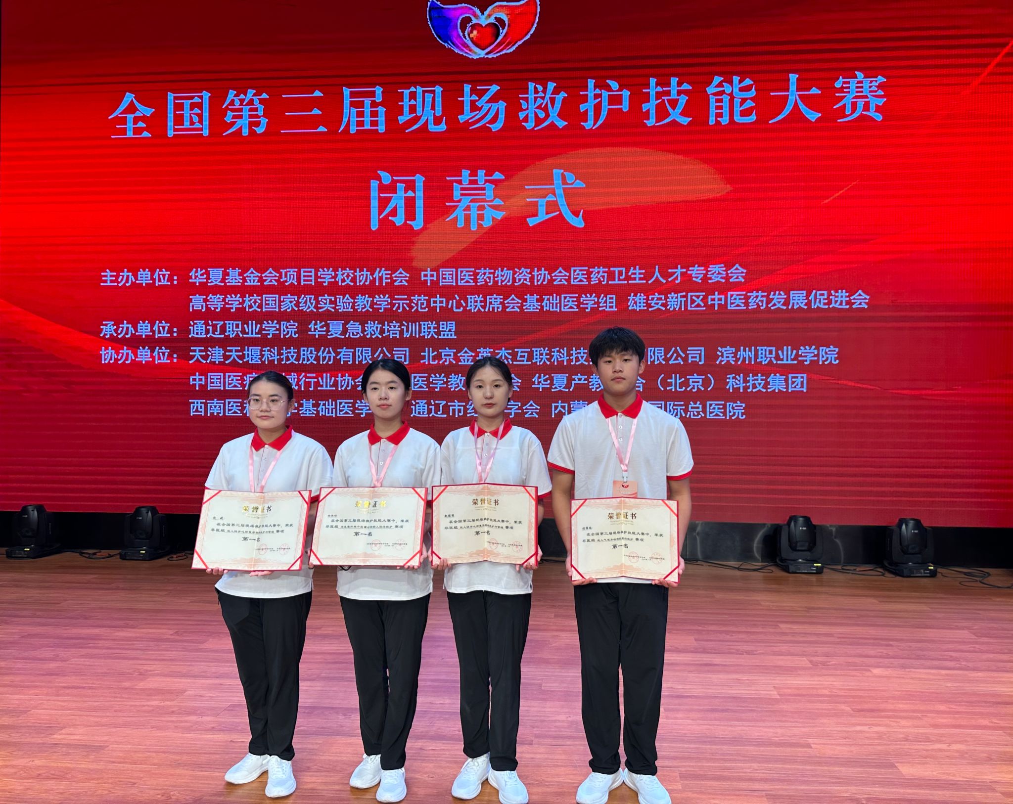 近日,开元在中国医药物资协会医药卫生人才专委会、高等学校国家级实验教学示范中心联席会基础医学组等单位联合主办的“全国第三届现场救护技能大赛”中喜获佳绩。开元赵聪聪和赵婕同学荣获非医学组双人徒手心肺复苏现场救护与管理赛项第一名,张梓楠同学荣获非医学组成人气道异物梗阻现场救护赛项第一名,田梁烁同学荣获非医学组突发意外单个危重创伤病人现场救护赛项第一名,孙丽娜老师和杨丽娟老师分别荣获团体第一名优秀指导教师,学校荣获非医学组团体第一名。