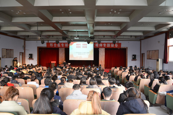 讲座对党的十九大精神进行了透彻的分析和解读,阐述了新时代党的面貌、国家面貌、人民面貌、军队面貌、中华民族面貌发生的变化, 对“新时代、新思想、新目标、新征程”进行了生动地阐述,让师生认识了学习贯彻党的十九大精神、深刻领会习近平新时代中国特色社会主义思想的重要意义。张青涛在讲座中指出,高校辅导员肩负着重大的责任和使命,认真做好新时期的学生工作,一定要深刻理解党的十九大精神内涵,把学习贯彻党的十九大精神转化为关爱学生、服务学生、引领学生的实际行动,努力提高自身政治素质和理论水平,争做有理想信念、有道德情操、有扎实学识、有仁爱之心的“四有”好老师。同时,张青涛也特别嘱咐在场大学生要不忘初心、牢记使命,多关注集体、国家和社会的发展,提高自身的政治敏锐性,做到知历史、明时局,勇于担当起改革和发展的重任,做好社会主义事业的可靠接班人,为实现中华民族复兴的伟大中国梦而努力奋斗。