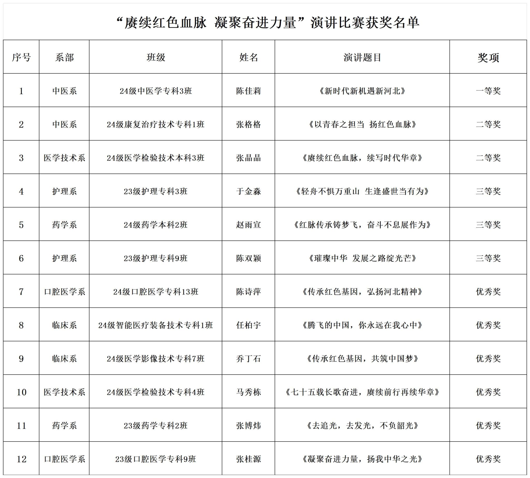 开幕式后,举行了“传承红色基因 唱响时代强音”大合唱比赛和“赓续红色血脉 凝聚奋进力量”演讲比赛,经过激烈角逐,临床医学系第一代表队摘得大合唱比赛桂冠,中医系24级中医3班陈佳莉获得演讲比赛第一名。