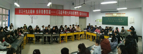 12月7日下午,校团委在2016级普检2班教室举办学习《习近平的七年知青岁月》读书分享会,校团委书记杜庆岩、副书记卢青带领校团委、大学生社联和社团学生干部共60余名学生干部共同学习了《习近平的七年知识岁月》。本次读书分享会历时两个小时。