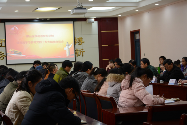 在听取了辅导员们学习十九大精神的心得体会后,党委委员、副校长张志强指出辅导员队伍建设应该更加专业化、职业化,并提出辅导员应该思考新时代高校思想政治工作如何创新,如:如何做好大学生心理危机建设和干预、互联网+时代学生安全等。最后,党委书记、校长李占华耐心地回答了辅导员们提出的问题,肯定了大家的工作成绩,将辅导员们亲切的比喻为“最接近炮弹的、能打胜仗的、最能吃苦的部队”,他指出,学生就是学校的根本,辅导员要热爱这个工作岗位,要对学生关心、知心和交心,以习近平新时代中国特色社会主义思想为指导,更好的创新和完善学生管理工作,争创邢台医专更美好的明天。