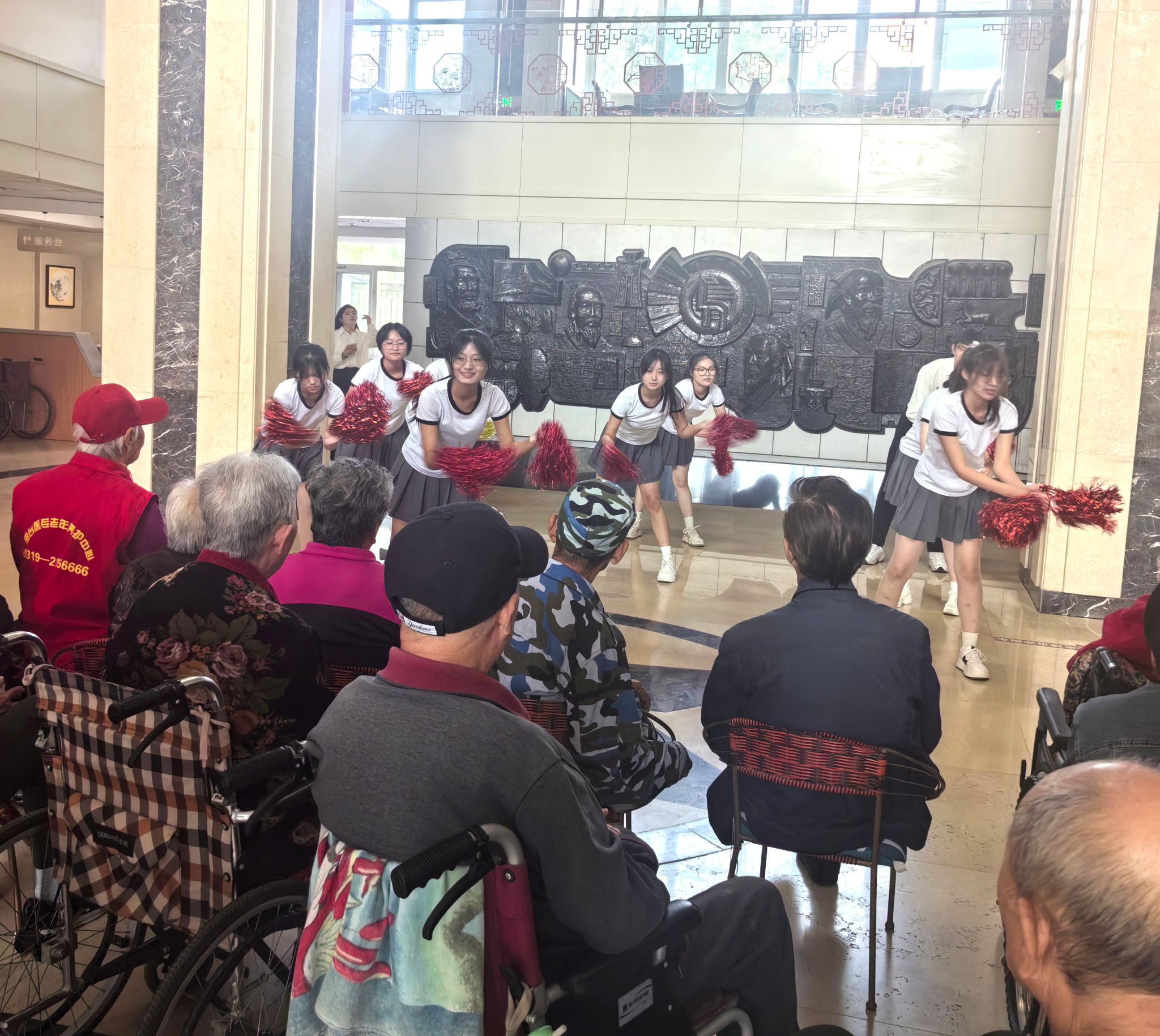 爱心互助社35名学生到学校老年养护实训中心开展了“爱老敬老 ‘青’暖重阳”文艺汇演,同学们为住养老人表演了舞蹈、歌曲等8个节目,陪住养老人度过了一个欢乐祥和、充满温馨的重阳节。