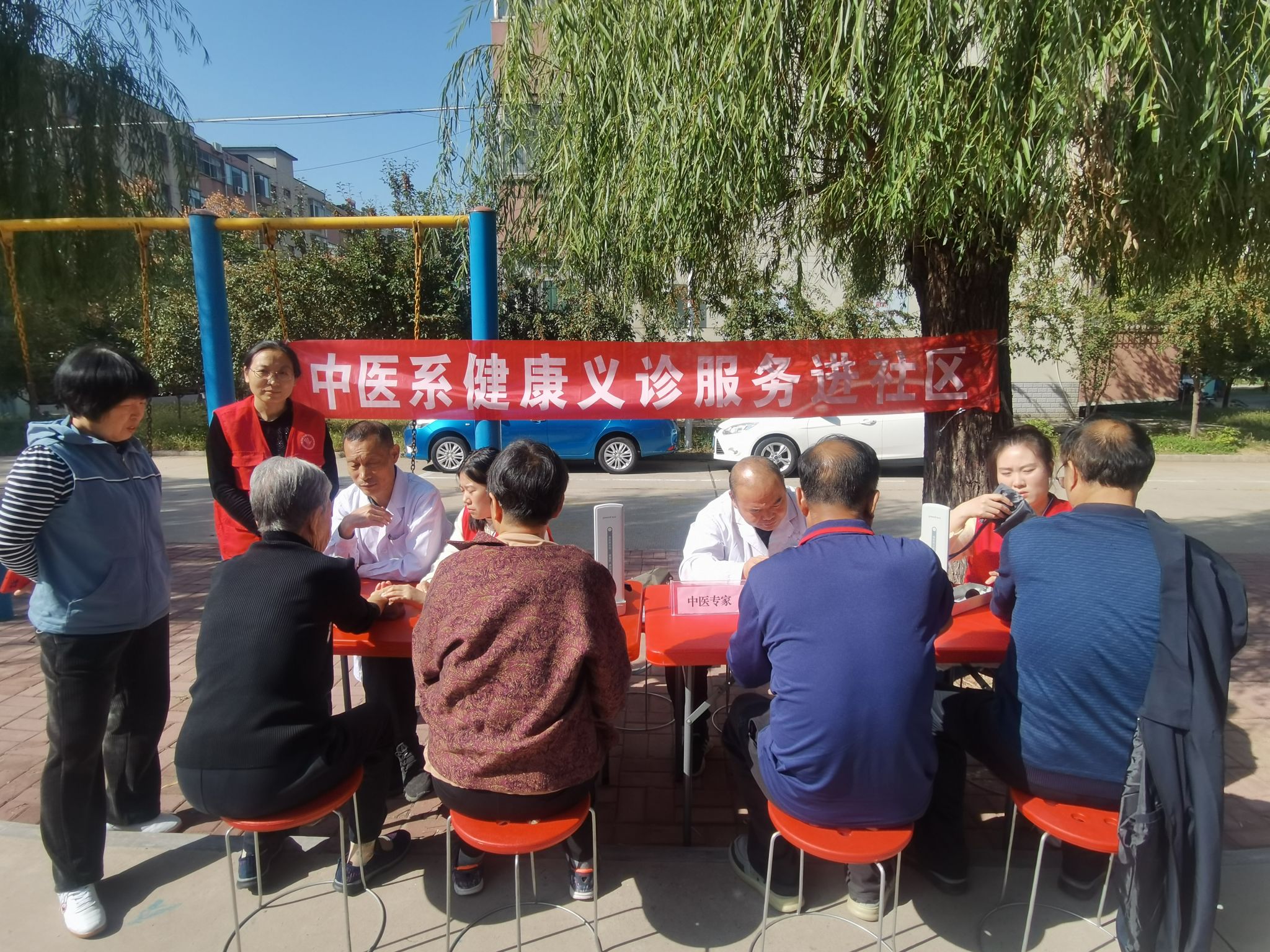 中医系党总支8名党员志愿者到联创共建小区石安高速小区开展“送健康、送温暖”义诊活动,为小区老年人免费测量血压、血糖,号脉诊断病情,普及季节性疾病预防知识,把健康送到老人身边,将温暖送到老人心上。