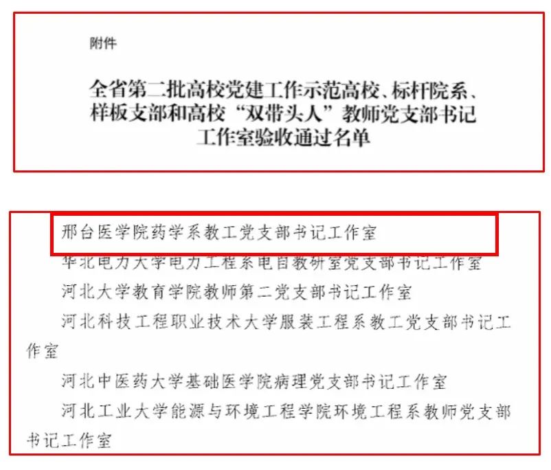 近日,河北省委教育工委公布了全省第二批高校党建工作示范高校、标杆院系、样板支部和高校“双带头人”教师党支部书记工作室建设单位验收通过名单,开元药学系教工党支部书记工作室顺利通过验收。