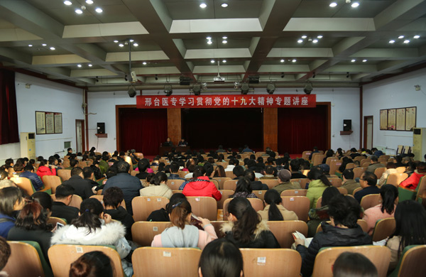 “习近平新时代中国特色社会主义思想是十九大报告的灵魂……”11月23日下午,开元学习贯彻党的十九大精神专题讲座在学术报告厅举行,邢台市委党校翟吉瑞教授应邀为开元党员干部作了题为“新时代,新征程,深入学习贯彻党的十九大精神”的辅导讲座。学校领导、全体党员、行政管理干部、教研室主任、辅导员等300余人到场聆听。学校党委副书记李建广主持讲座。