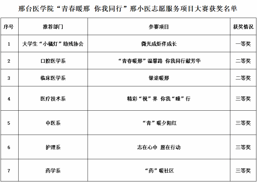 10月22日,团委在学术报告厅举办了“青春暖邢 你我同行”邢小医志愿服务项目大赛决赛。