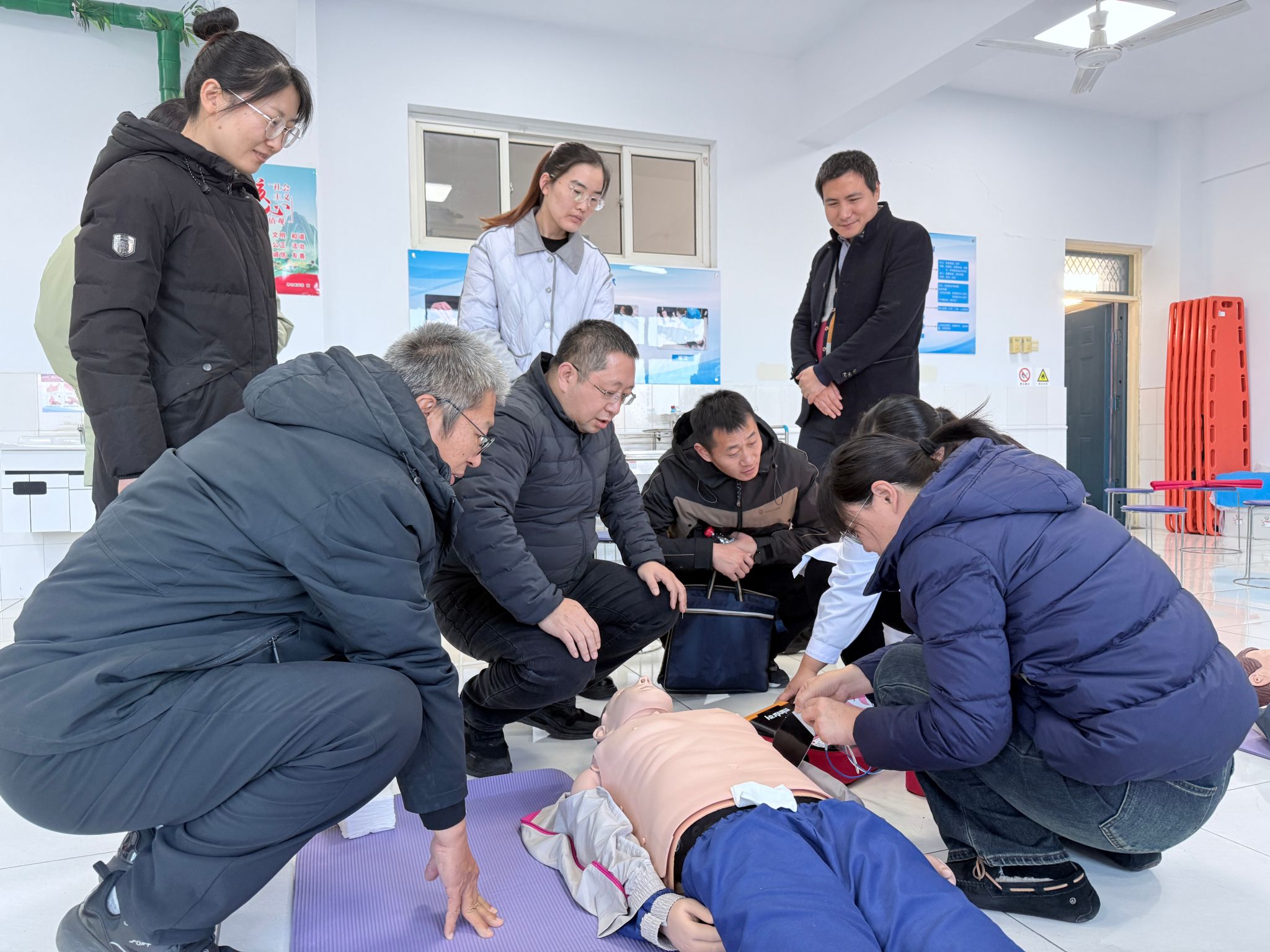 活动中,第一协作组一行首先参观了学校校史馆,讲解员详细介绍了学校的办学历程和经验成就。随后,大家一起来到临床医学系,系主任、第二附属医院党委委员、副院长魏双平介绍了临床医学系党总支“一核五地”党建工作机制,即实施党建引领育人为核心,打造“党建高地”、筑牢“思想阵地”、强化“教学领地”、深耕“育人园地”、拓展“急救基地”。与会人员参观了临床医学系楼道文化墙、急危重症实训室、模拟手术室、预防实训室、创伤急救实训室等实验实训室,在创伤急救实训室,工作人员向大家介绍了临床医学系教工党支部“‘医’心向党,‘救’在身边”党建品牌工作开展情况,讲解了心肺复苏术和海姆立克急救法适用情景、施救方法以及注意事项,并进行了操作演示,与会人员亲自体会了相关操作,工作人员耐心地指导着每一个动作,确保大家真正掌握急救术的要领。