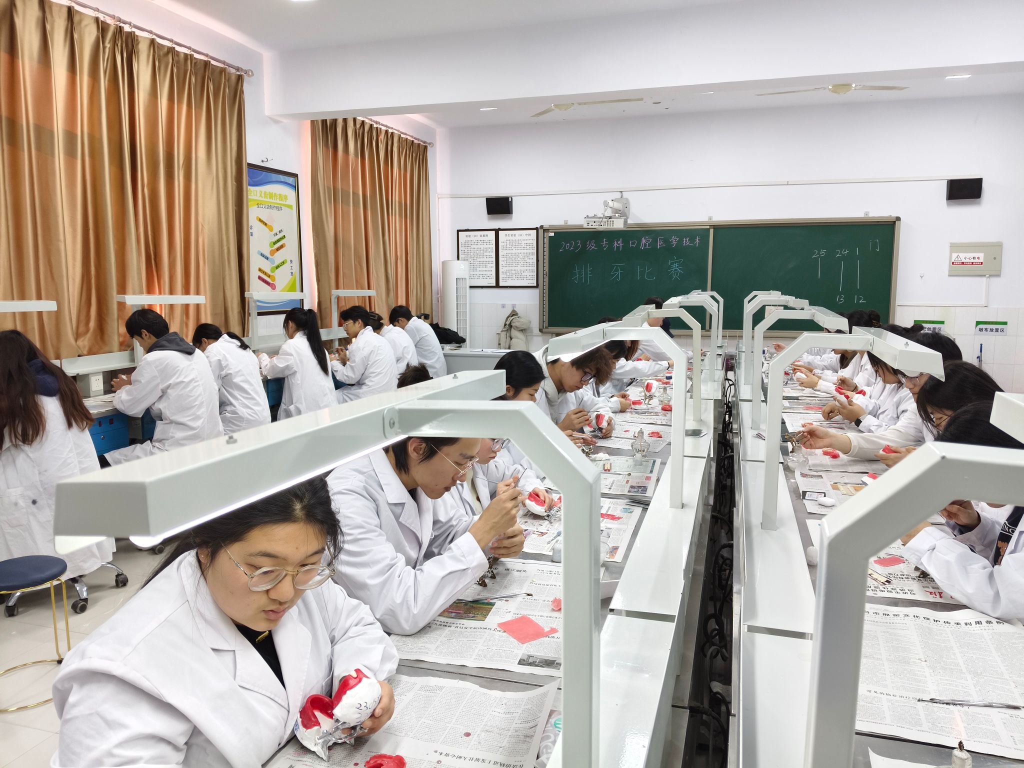 为检验教学成果,激发学生对专业学习的热情,近日,口腔医学系组织1000余名在校生开展了牙体堆塑、牙体雕刻、全口排牙等口腔技能比赛。