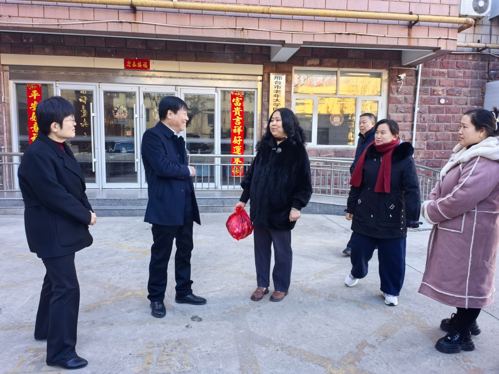 灵蛇纳福贺新春,走访慰问暖人心。1月28日,农历新春佳节即将到来之际,学校领导李建广、赵建文、林雪霞、张永格分别到钢铁路校区、皇寺校区、直属附属医院和老年养护实训中心看望慰问在岗干部职工,向他们致以诚挚的问候和节日的祝福。