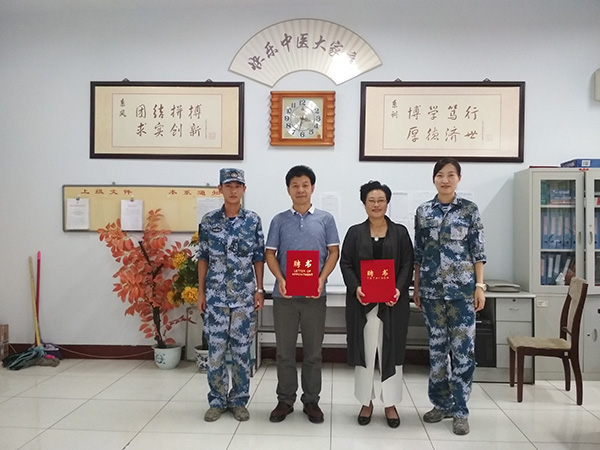 为提升海军卫生专业人才培养质量,密切军地交流合作,应解放军某部海军学校相邀,中医系崔剑平、梁丽英、张晓哲三位教师被聘请为该部客座教授,并于9月20日举行了颁发客座教授聘书仪式。
