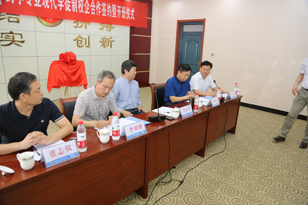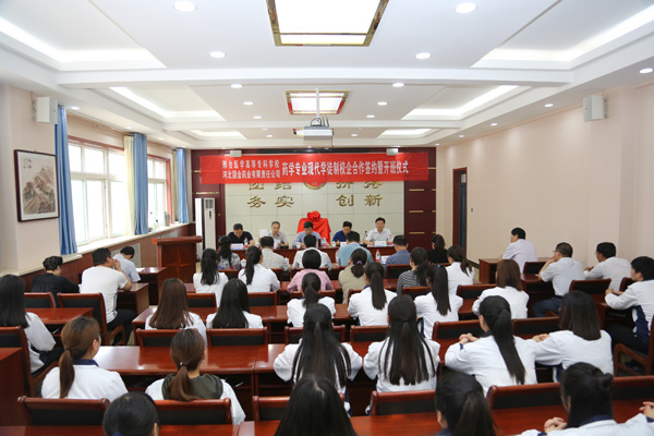 会上, 学校党委委员、副校长李朝鹏从专业设置、课程建设、实验实训室建设、招生就业情况等方面简要介绍了学校的基本情况。河北国金药业有限责任公司董事长、总经理张四岩从企业发展方向和国金药业新厂区建设规划情况介绍了企业的基本情况。药学系副主任张立峰宣读了《邢台医学高等专科学校与河北国金药业有限责任公司合作成立药学专业现代学徒制班实施方案》。
