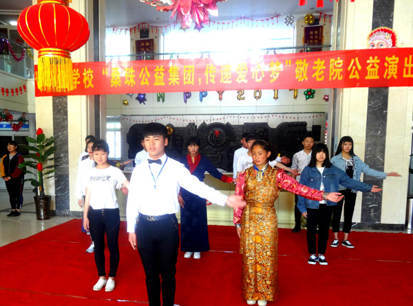 4月22日上午,邢台现代职业学校“桑珠公益团队”30名志愿者到开元市区老年养护中心举行公益演出,为老人们带来了藏族舞蹈、流行歌曲、山东快书、手语表演等精彩节目,得到住养老人的好评。
