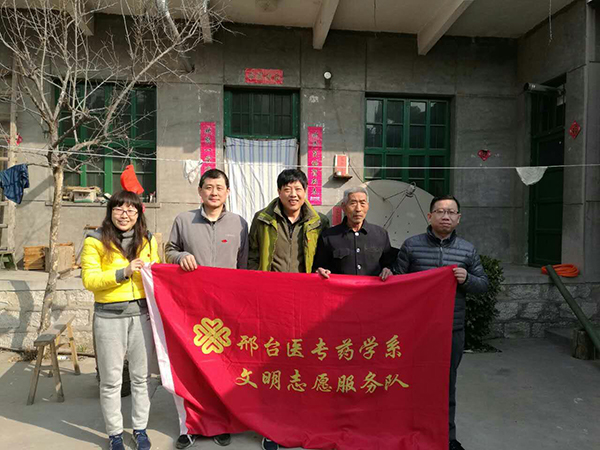 3月4日,药学系党总支组织5名党员教师来到邢台县北小庄乡白杨庄村,走访看望了“春雨行动”结对帮扶对象刘长路老人。老师们为老人送上米、面、油、奶等生活用品,并与老人亲切交谈,详细询问了老人家里情况和近来身体情况,嘱咐老人要注意防寒保暖、预防感冒、坚持用药、合理膳食,同时介绍了一些常用药物知识。老人对学校和老师的帮助表示感谢,对党和政府的关心表示感谢。党员教师们用实际行动展现了新时代学习雷锋精神的新内涵。