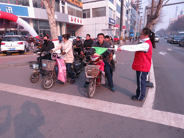 3月4日,21名青年志愿者头戴小红帽,身穿红马甲,手拿小彩旗,来到开元大学生社会实践基地——市守敬交通岗,进行交通协勤志愿服务。交警队负责人对志愿者们进行了交通指挥手势岗前培训,志愿者在交警的指导下分成4组有条不紊的进行志愿活动,提醒行人和非机动车辆注意交通安全,禁止横穿马路,乱闯红灯,帮老幼病残过马路,帮忙推抛锚的车辆,做到“红灯停,绿灯行”文明过马路,共创“文明有序、安全畅通”的交通环境。口腔医学系团总支组织2016级普口1班、2班团支部分别来到守敬路路口和泉北大街路口,开展“安全交通,情系你我”宣传活动。志愿者用实际行动参与到共建文明城市的热潮中,增强了同学们的社会责任感和使命感。