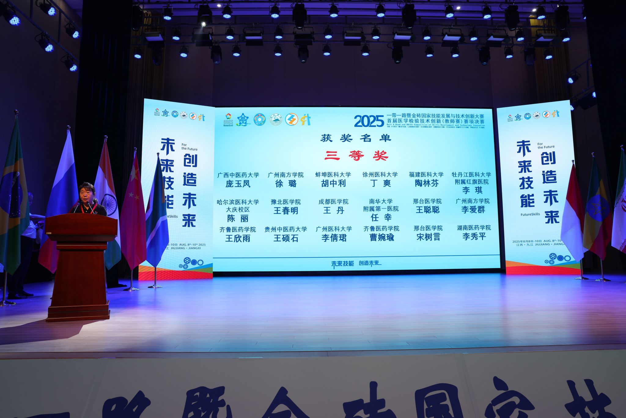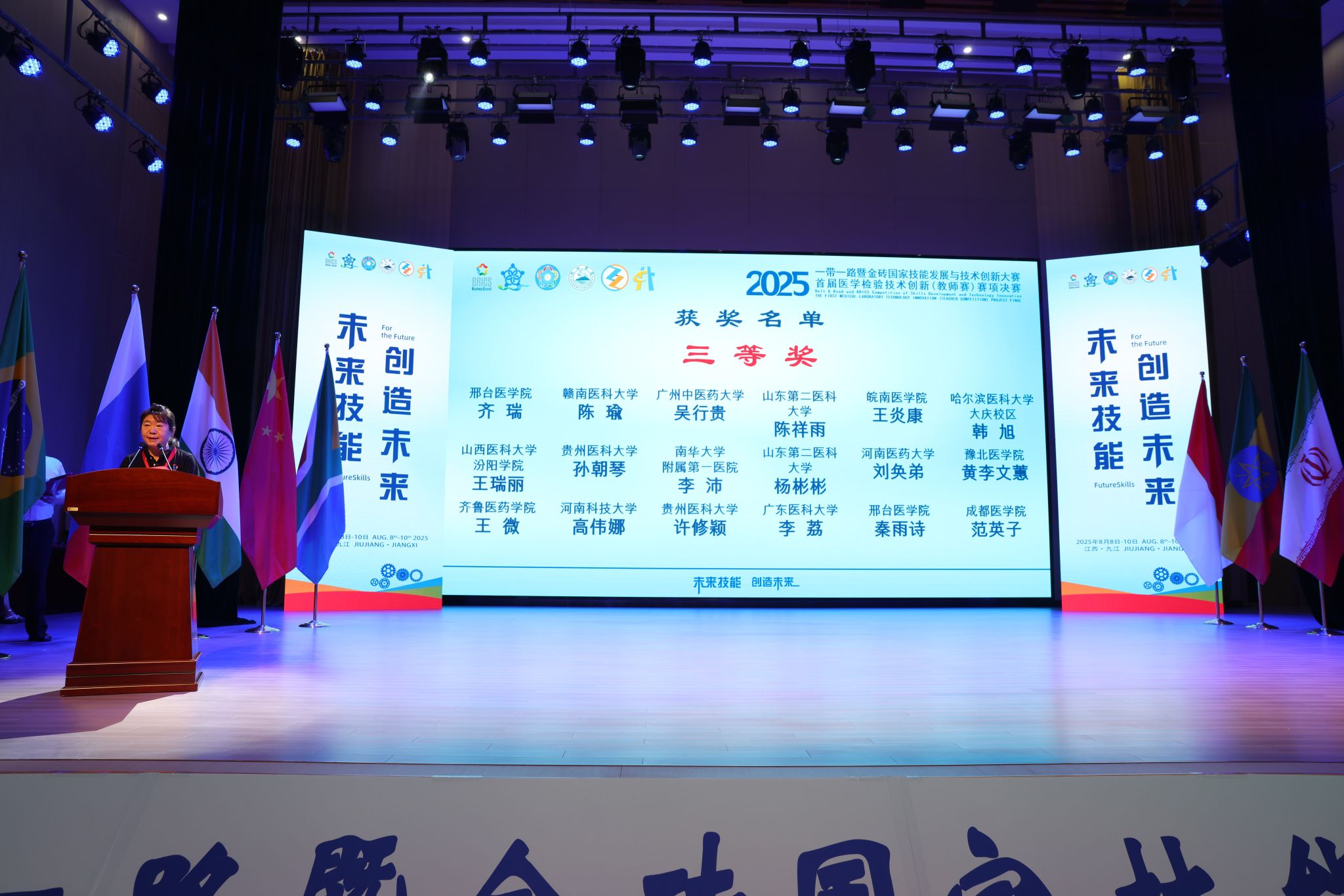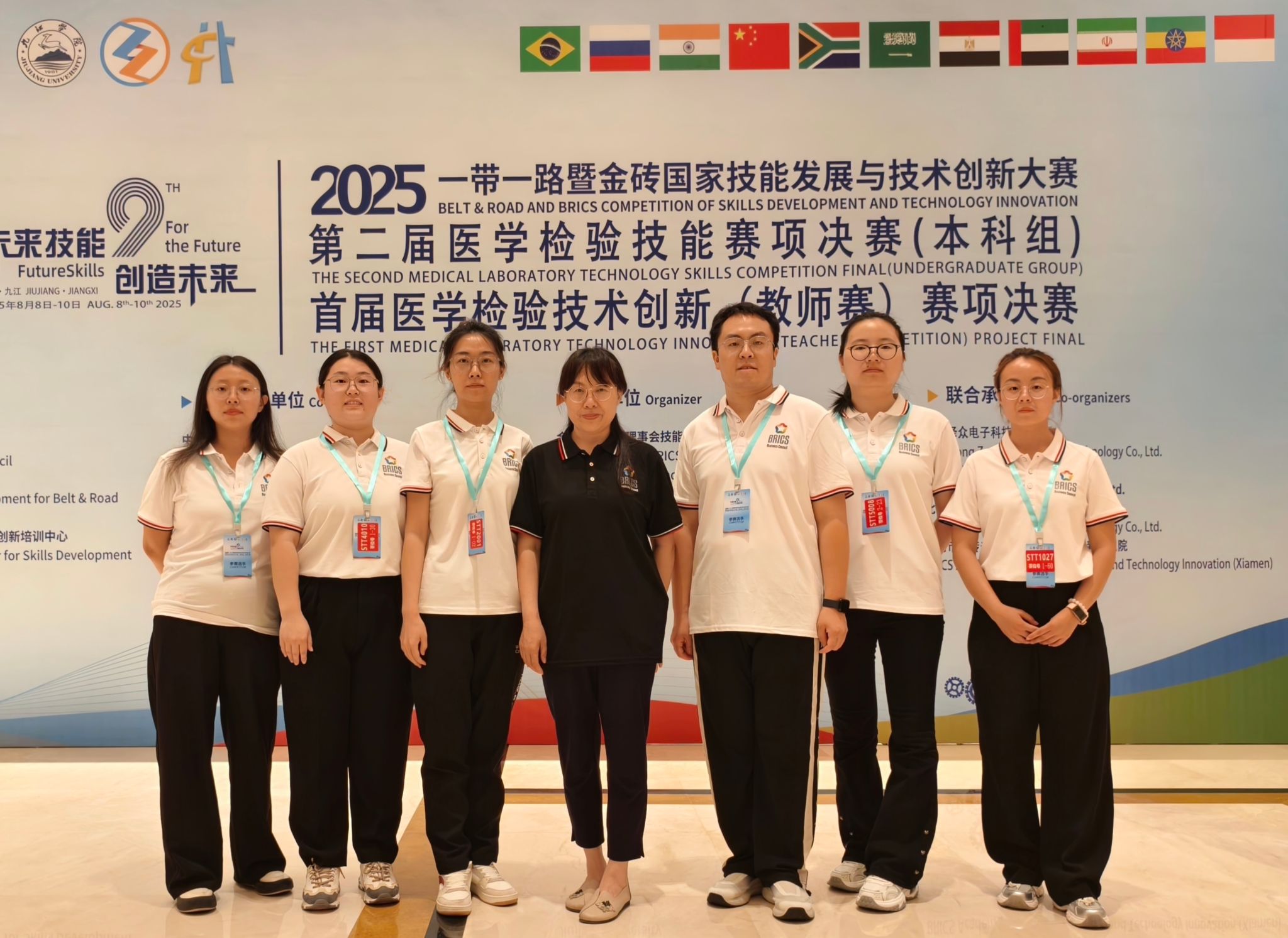 近日,由教育部主办、九江学院承办的2025“一带一路”暨金砖国家技能发展与技术创新大赛落下帷幕。开元医疗技术系王若潼、张笑笑、宋树言、齐瑞、王聪聪、秦雨诗6名教师在医学检验技术创新赛项中,凭借扎实的专业功底与创新实践能力,斩获二等奖1项、三等奖5项,学校荣获“优秀组织奖”。