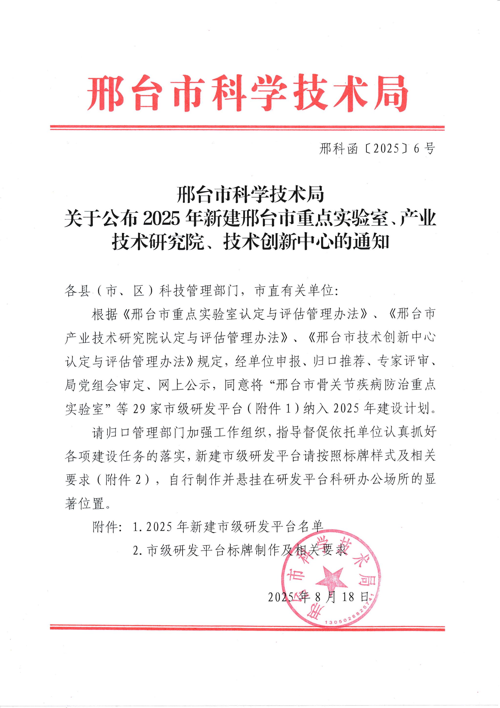 近日,邢台市科技局公布了2025年新建市级研发平台名单,开元药学系“邢台市药物分析重点实验室”入选2025年度邢台市重点实验室,标志着学校在科研平台建设方面取得了新突破。