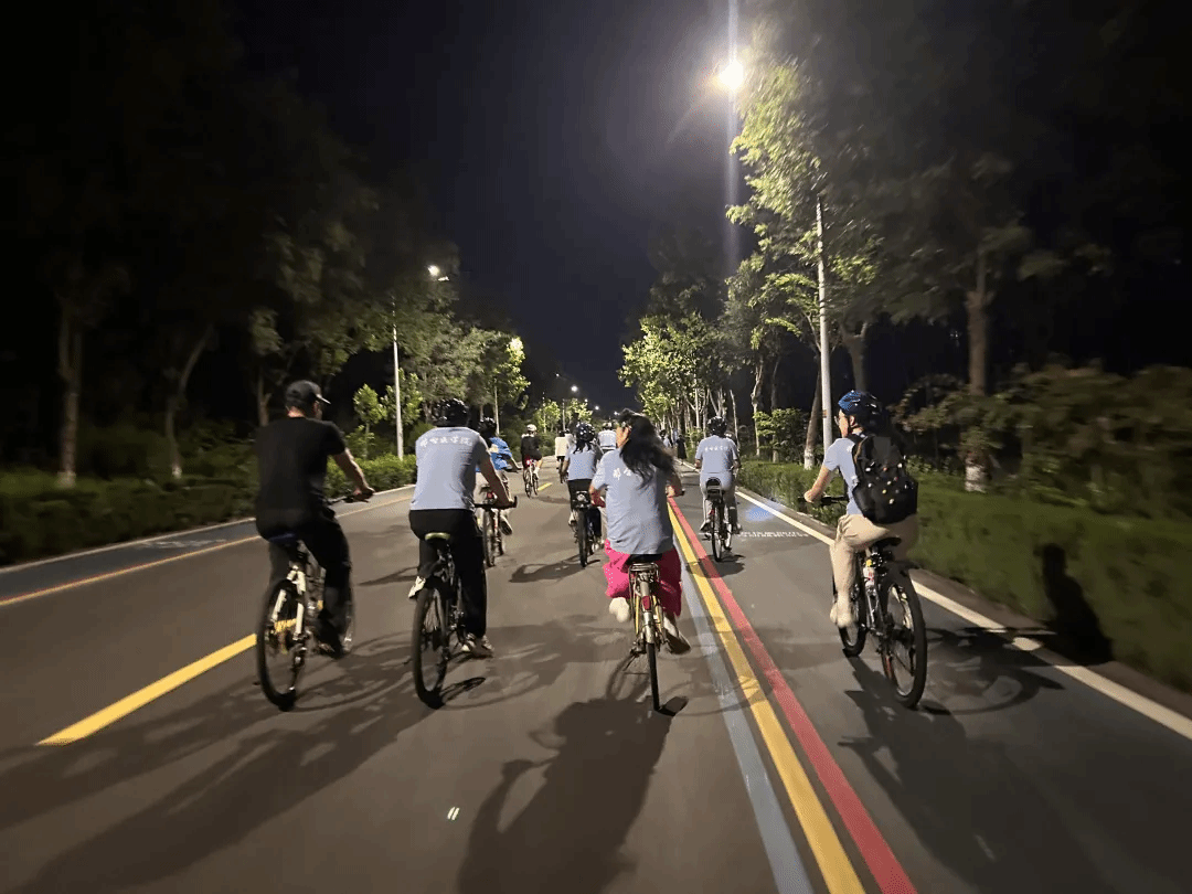 傍晚时分,在学校党委书记、校长李建广,党委副书记张志强的带领下,30多名教职工从七里河体育公园东门出发,沿健身绿道一路向西骑行。途中,大家欢声笑语,畅享骑行,用健康、活力的方式共同庆祝属于自己的节日,教师们并肩骑行的画面,成为夜幕下一道亮丽的风景线。