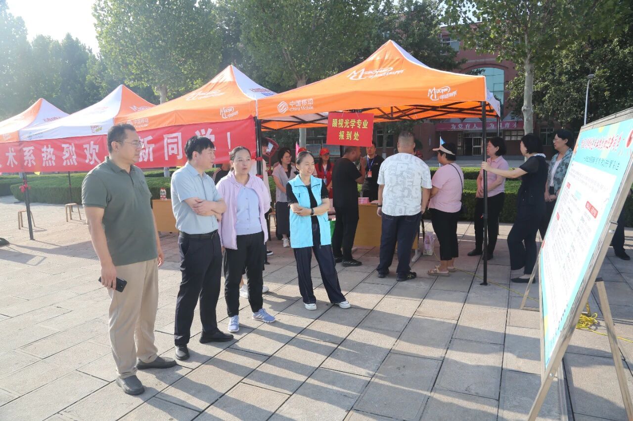 学校领导先后来到钢铁路校区、皇寺校区及校外迎新点,详细了解各点位迎新工作进展情况,亲切慰问迎新教师和志愿者,叮嘱相关部门要持续优化服务保障,确保迎新工作圆满顺利;与新生及家长亲切交流,勉励新生尽快适应新环境,开启精彩大学生活。在2025级口腔技术本科班宿舍,学校党委书记、校长李建广与刚刚入住的新生和家长聊起了家常。“同学老家在什么地方,路上顺利吗?”一句句关切的询问,拉近了彼此的距离。李书记还细致查看了宿舍生活设施,并就如何改善学生生活条件提出了指导性意见。