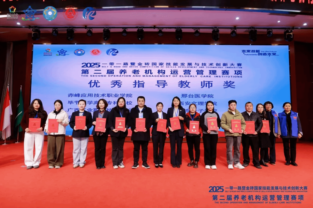 近日,2025一带一路暨金砖国家技能发展与技术创新大赛第二届养老机构运营管理赛项决赛圆满落幕,开元护理系2024级养老服务管理专业本科班王麒、张丹琳、王子涵团队斩获本科组全国一等奖(第一名),指导教师刘娜、郑春贵荣获优秀指导教师奖,实现了开元养老服务管理本科专业在全国专业技能赛事中的突破。