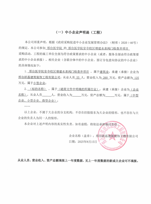 供应商名称:邢台跃磊建筑装饰工程有限公司