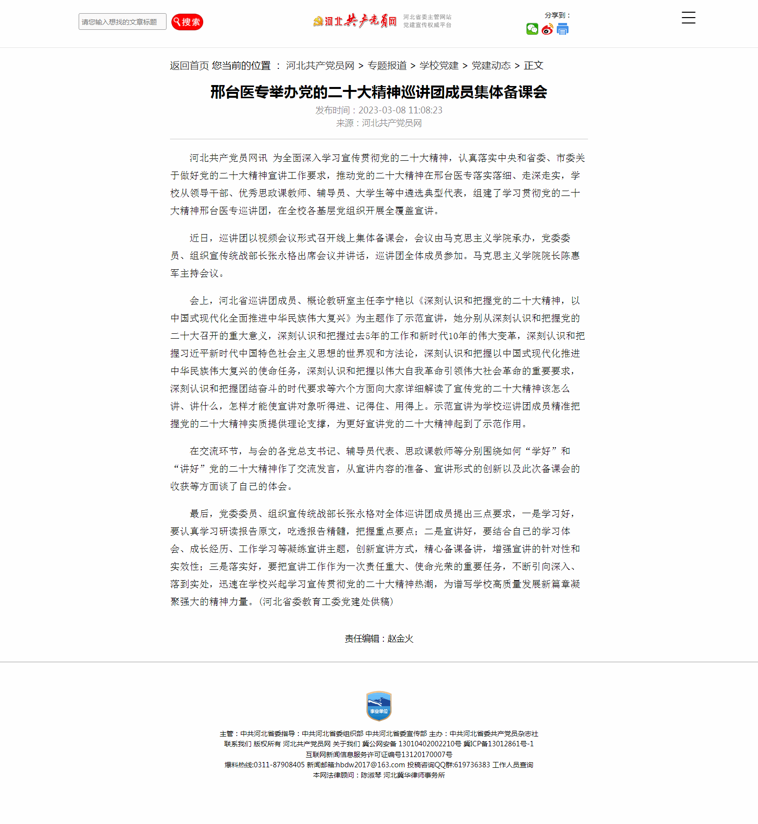 上一条:河北共产党员网报道:邢台医专组织开展“学习雷锋精神、争做时代先锋”主题党日活动