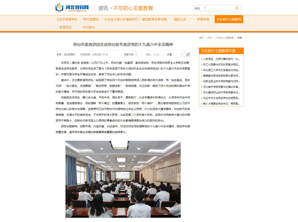 下一条:邢台日报报道市委宣讲团走进邢台医专宣讲党的十九届六中全会情况