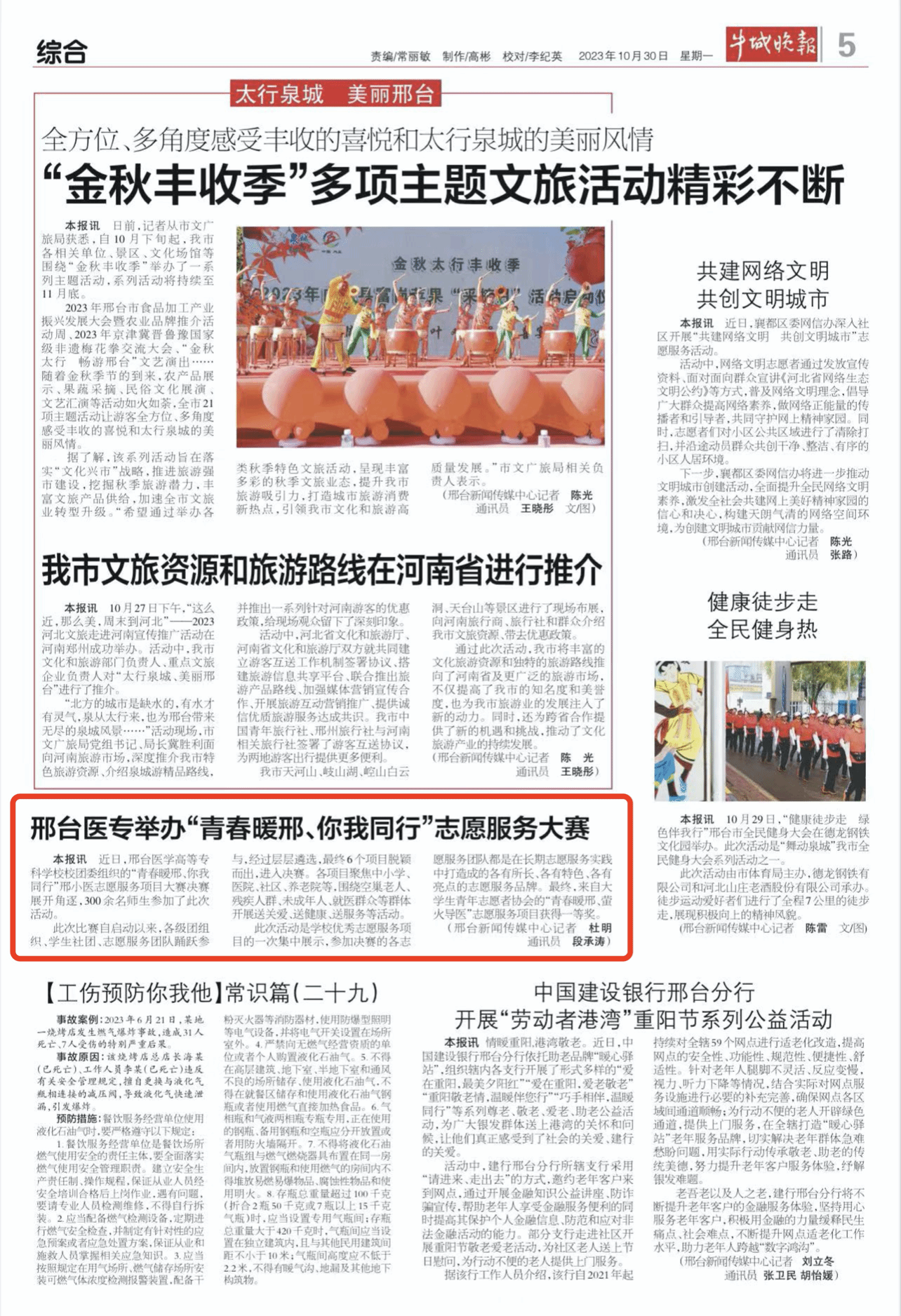 牛城晚报:邢台医专举办“青春暖邢、你我同行”志愿服务大赛
