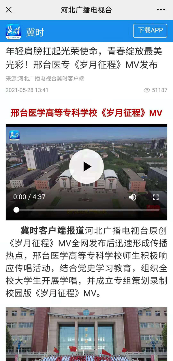 下一条:今日头条报道“听!小天使们在唱歌!邢台医学高等专科学校唱响《岁月征程》”