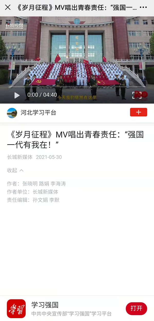 下一条:河北广播电视台冀时客户端报道“年轻肩膀扛起光荣使命,青春绽放最美光彩!邢台医专《岁月征程》MV发布”