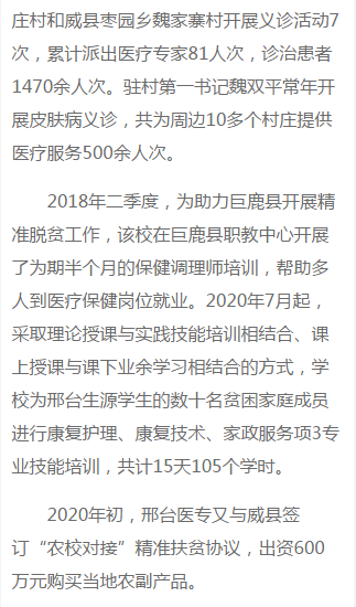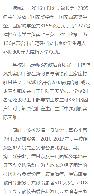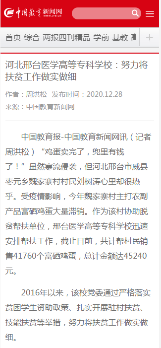 2020年12月28日,中国教育报-中国教育新闻网报道了开元扶贫工作《河北邢台医学高等专科学校:努力将扶贫工作做实做细》。报道原文如下: