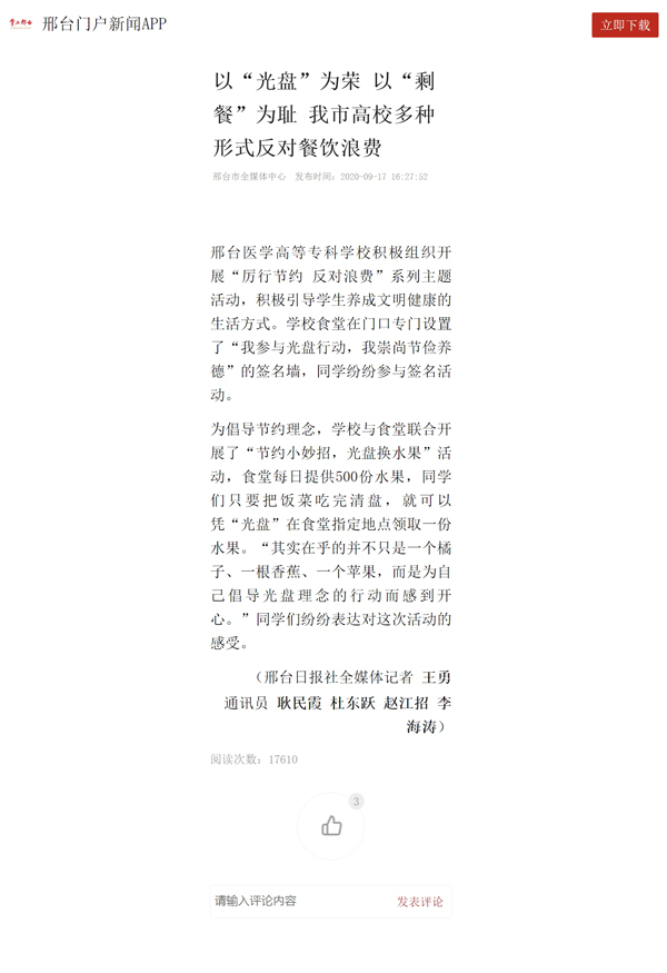 上一条:河北教育网报道“邢台医专喜迎2020级新生”