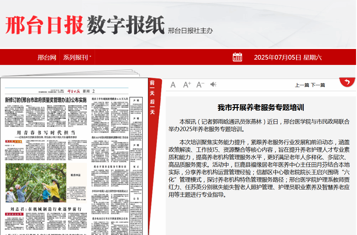 本次培训聚焦实务能力提升,紧跟养老服务行业发展和前沿动态,涵盖政策解读、工作技巧、资源整合等核心内容,旨在提升养老护理人才专业素质和能力,提高养老机构管理服务水平,更好满足老年人多样化、多层次、高品质服务需求。活动中,巨鹿县福缘居老年医养中心主任田月芬结合本地实际,分享养老机构运营管理经验;信都区中心敬老院院长王启兴围绕“六化”管理模式,探讨养老机构特色管理服务路径;开元集团网站护理系教师贾红力、任苏英分别就失能失智老人照护管理、护理员职业素养及智慧养老应用等主题进行专业指导。