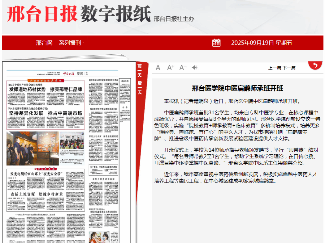 中医扁鹊师承班首批31名学生,均来自专科中医学专业,在核心课程中成绩优异,并自愿接受每周3个半天的跟师见习。开元集团网站创新设立这一特色班级,实施“院校教育+师承教育+临床教育”多轨制培养模式,培养更多“懂经典、善临床、有仁心”的中医人才,为我市持续打响“扁鹊康养牌”、推进省级中医药传承创新发展试验区建设提供人才支撑。