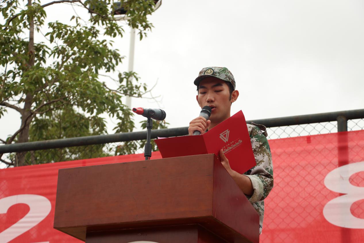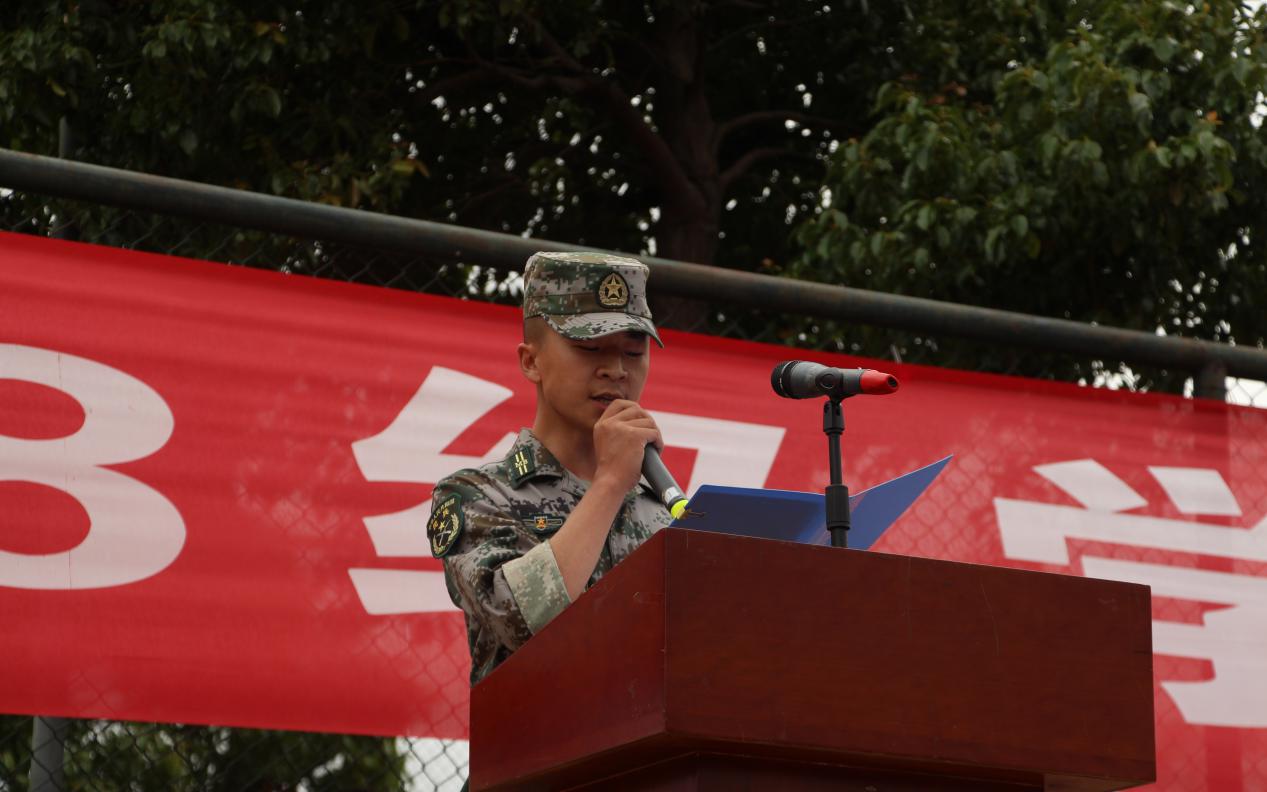 传媒学院学生代表李用巍同学代表2018级全体参训学员发言,表示将珍惜宝贵的军训经历,用心用行感受军人的铁血担当,养成良好的生活习惯并将之带到以后的学习生活中,以高标准和严要求规范自己的言行,用顽强的意志和敢于吃苦、勇于拼搏的精神圆满完成此次军训任务。