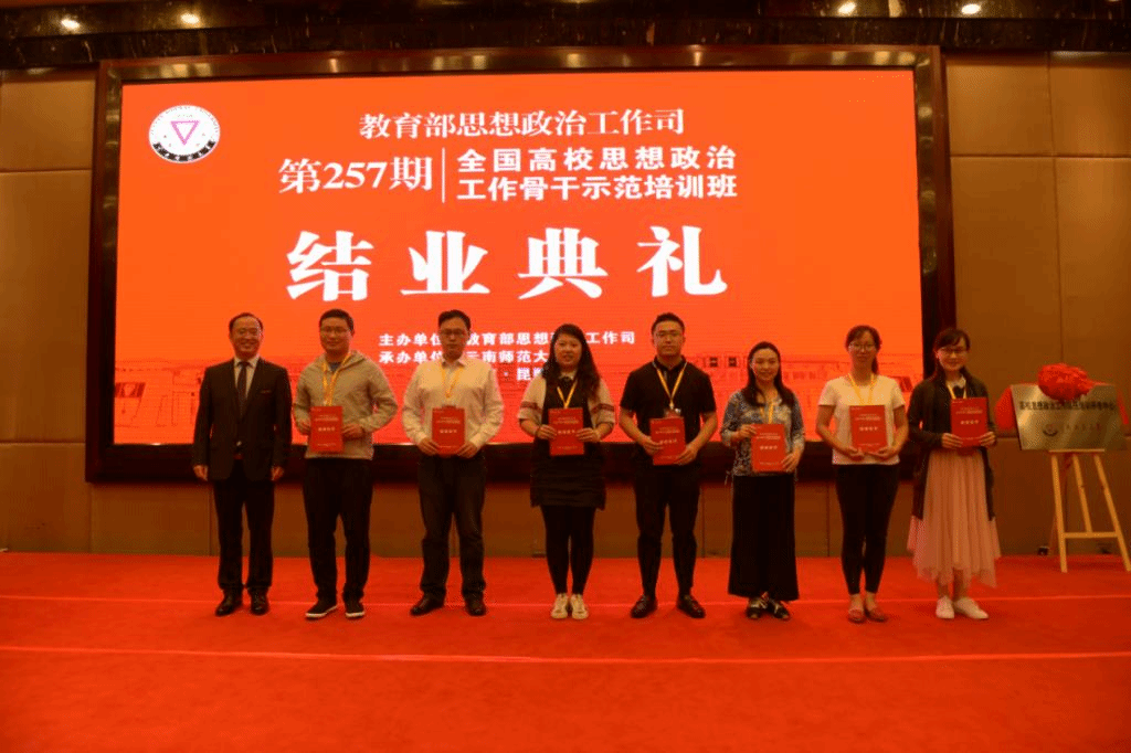 2019年7月7日至10日,由教育部思政司主办、教育部高校思想政治工作队伍培训研修中心(kaiyuncom官方网站)承办的第257期全国高校思想政治工作骨干示范培训班在kaiyuncom官方网站呈贡主校区国际交流中心举行。云南省委高校工委大学生工作部侯炳霞部长,kaiyuncom官方网站党委书记饶卫,校长蒋永文,党委副书记张玮、李宏,学校党委办公室、校长办公室、组织部、宣传部、研究生部、学生工作部主要负责人出席了开班仪式和结业典礼。