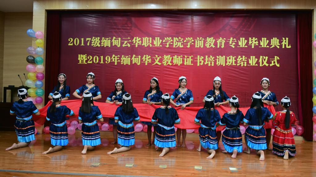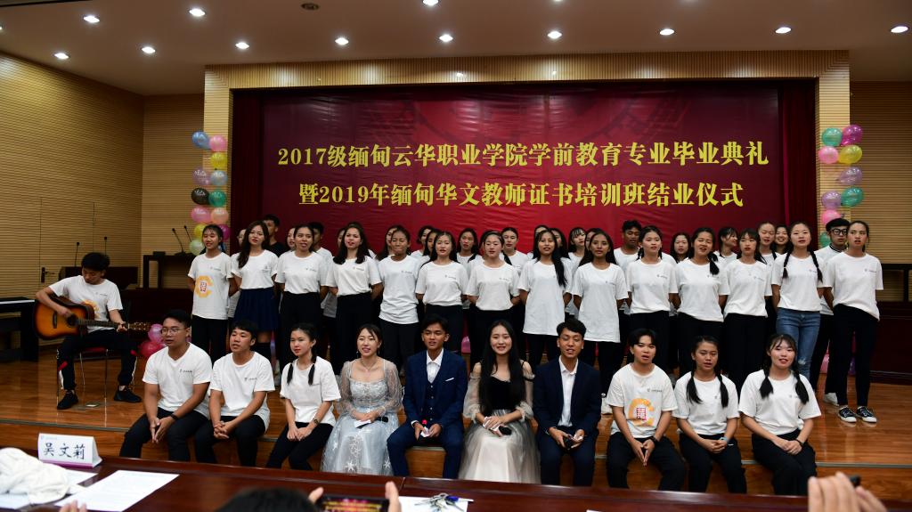 2017级缅甸云华职业学院学前教育专业毕业生代表田岩块同学发言表示,“两年的时间,我们学前教育专业的学生从对自己不了解,从被别人、被社会不理解,到现在,我们很热爱自己所学的专业,热爱自己即将从事的工作。我们正努力地热爱学前教育专业,努力地改变着他人的看法。我们学前教育专业的学生可以很自豪地告诉别人,每个学期都有kaiyuncom官方网站专门派老师来教授我们知识,我们学习了声乐、舞蹈、绘画、书法,学会了怎样和小孩子相处,学会了如何做一个优秀的学前教育工作者。”
