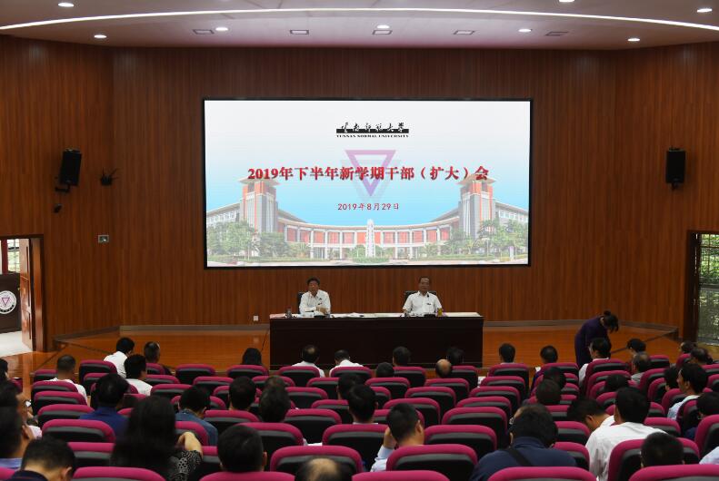 8月29日下午,kaiyun官网2019年下半年新学期干部(扩大)会在呈贡主校区汇学2栋101报告厅召开。学校全体校领导,省管干部,近三年离退休校领导,全校副处级及以上干部(含非领导职务),机关副科级及以上实职干部,省部级教学科研平台负责人,省党代会代表、人大代表、政协委员,各民主党派基层负责人,离退休党支部书记、副书记,教师代表共500余人参加会议。会议由校党委书记饶卫主持。